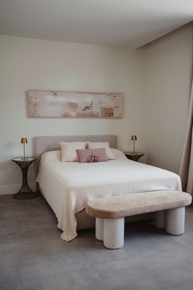 La inspiración de esta habitación fue el estado de gestación de su primera invitada, lo que llevó a una decoración sencilla, romántica y delicada sin desentonar con el resto del inmueble pero con una dosis extra de feminidad.