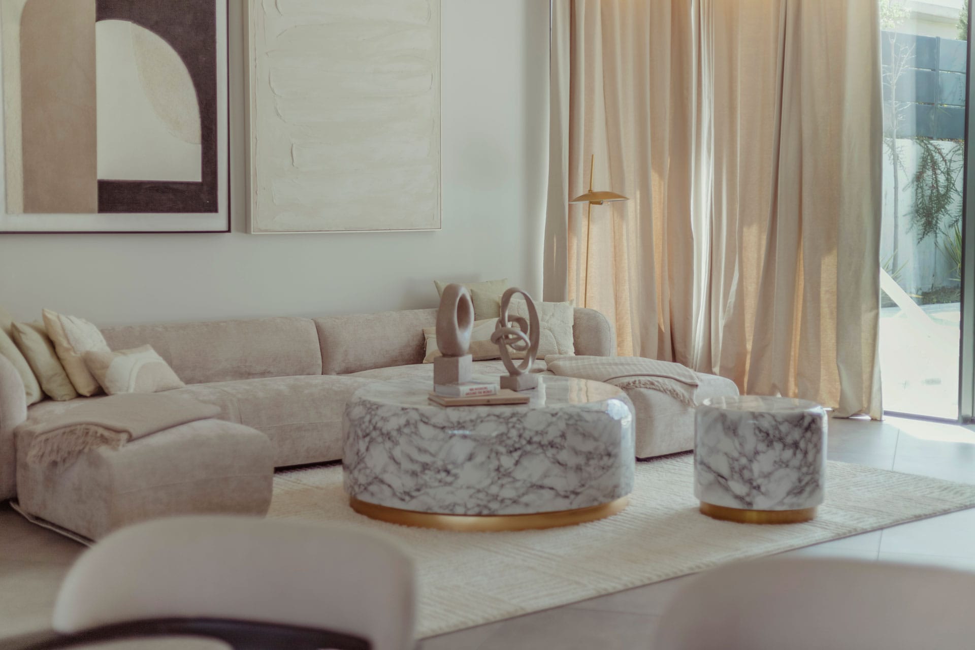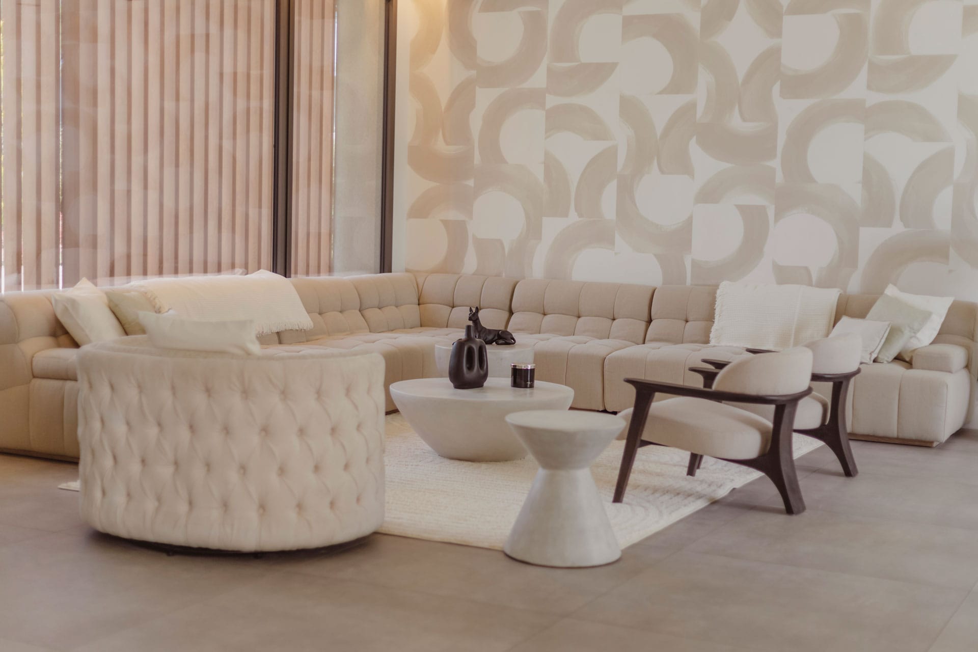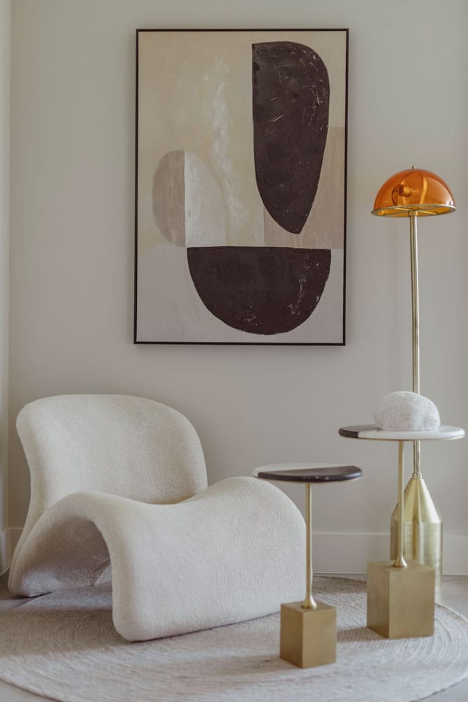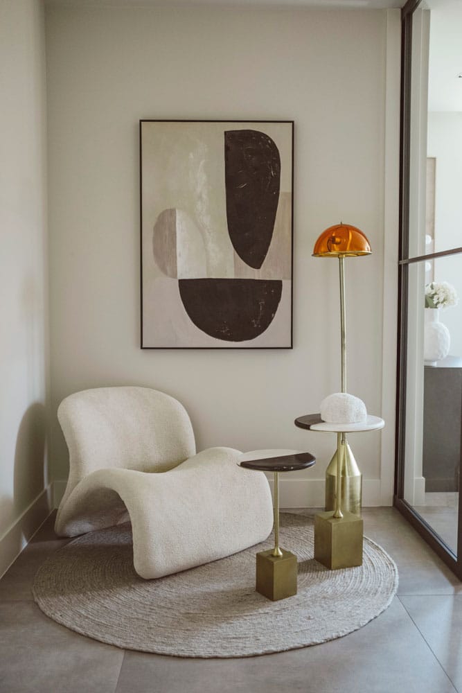 Las líneas curvas y la combinación beige y negro han sido el común denominador de esta estancia.