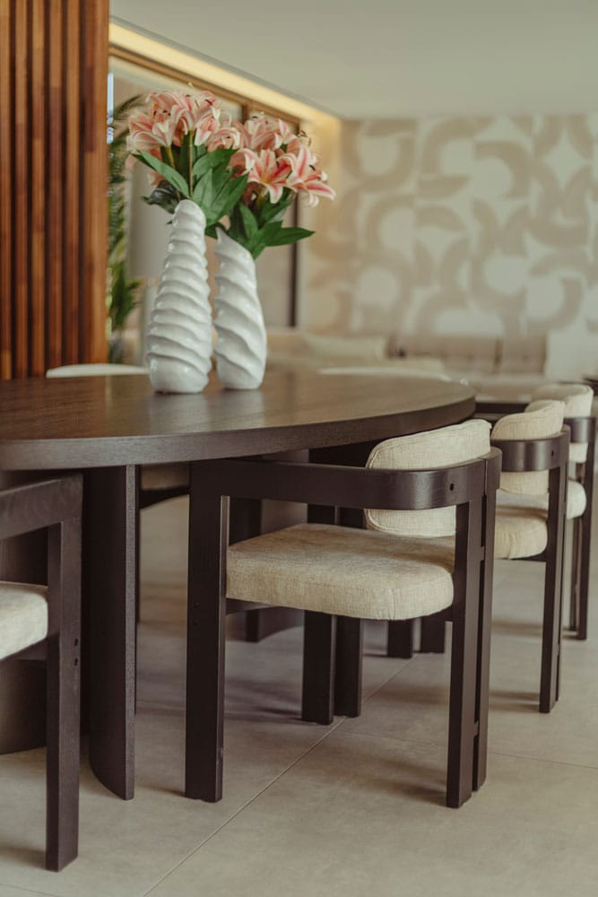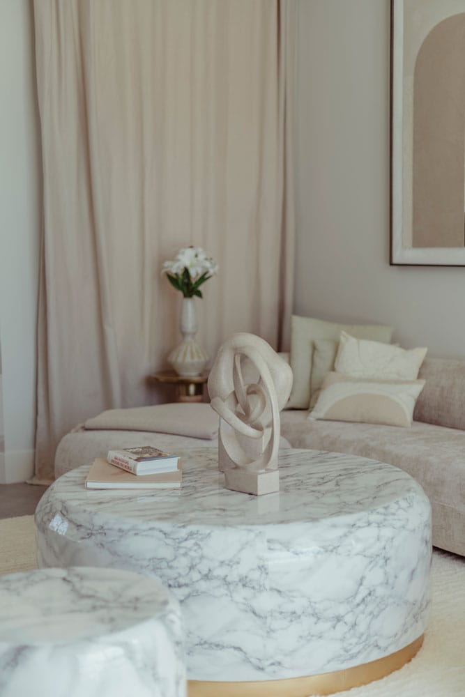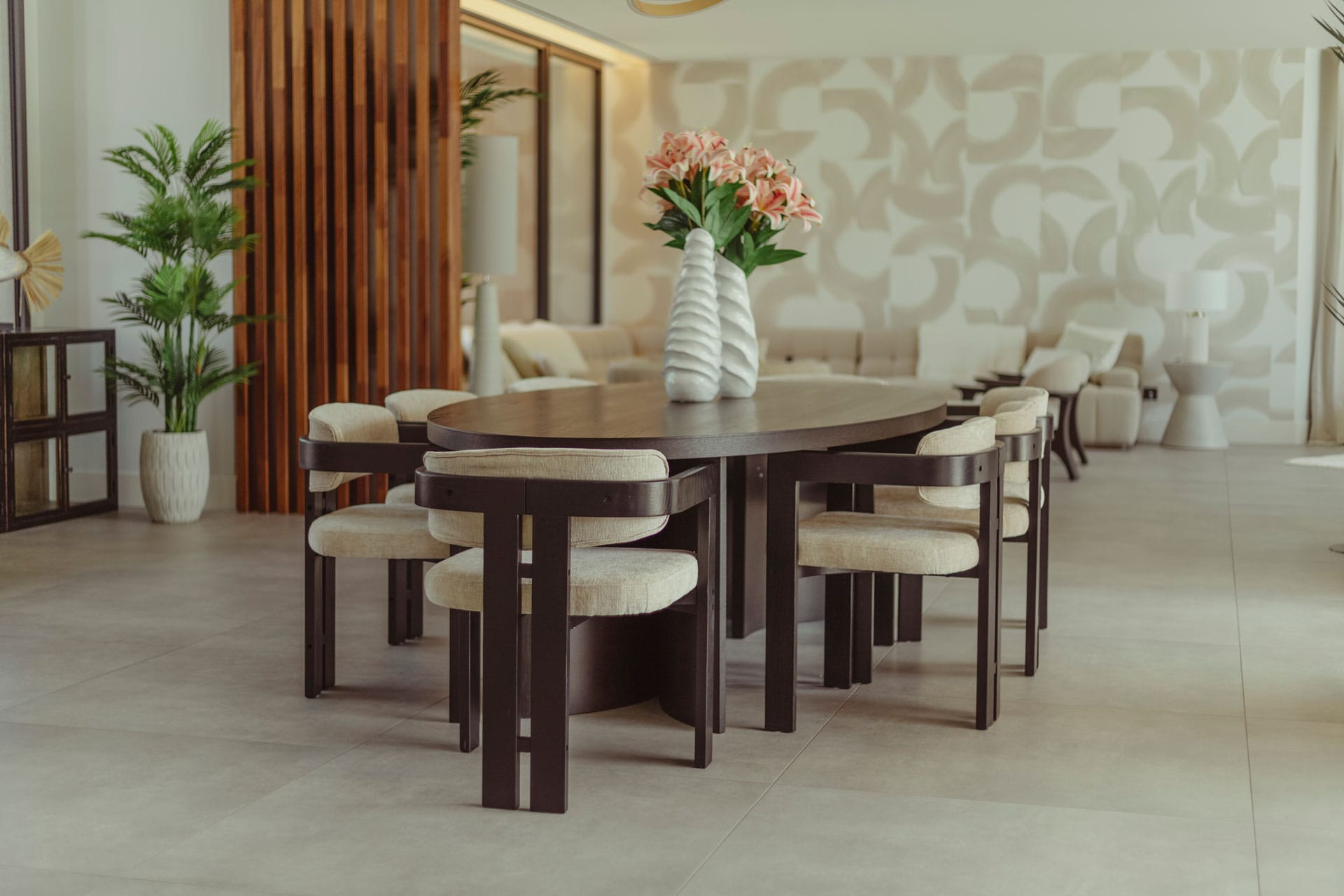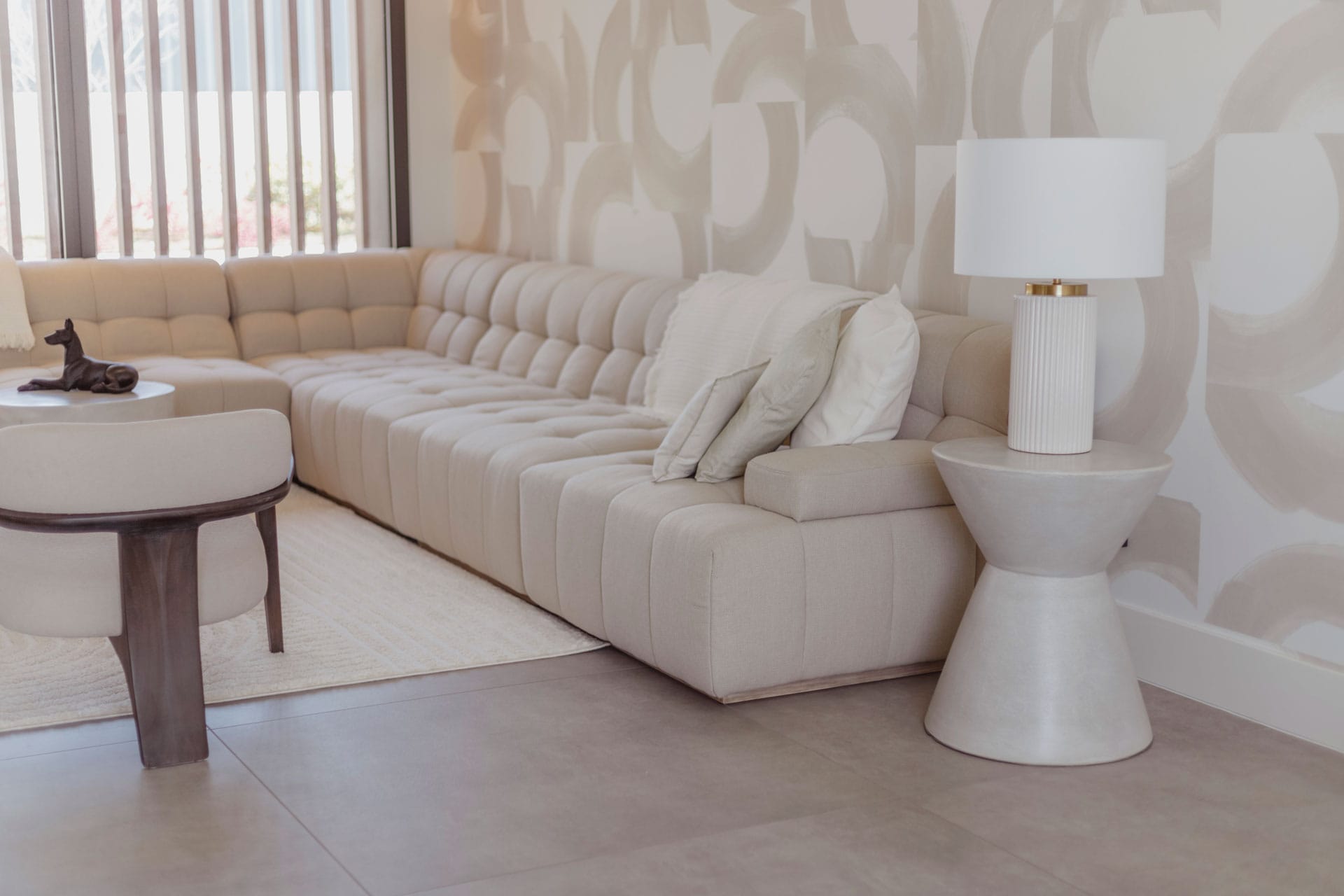 Las líneas curvas y la combinación beige y negro han sido el común denominador de esta estancia.