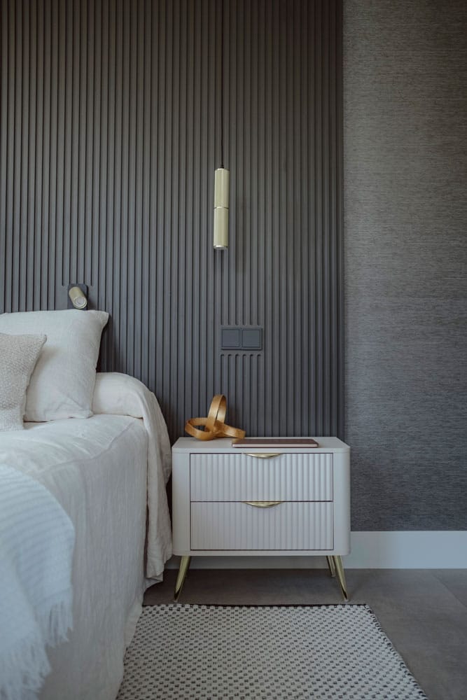 Esta estancia ya estaba dotada de armarios por lo que el diseño de este vestidor ha sido totalmente integrado con los materiales, acabados y colores acordes.