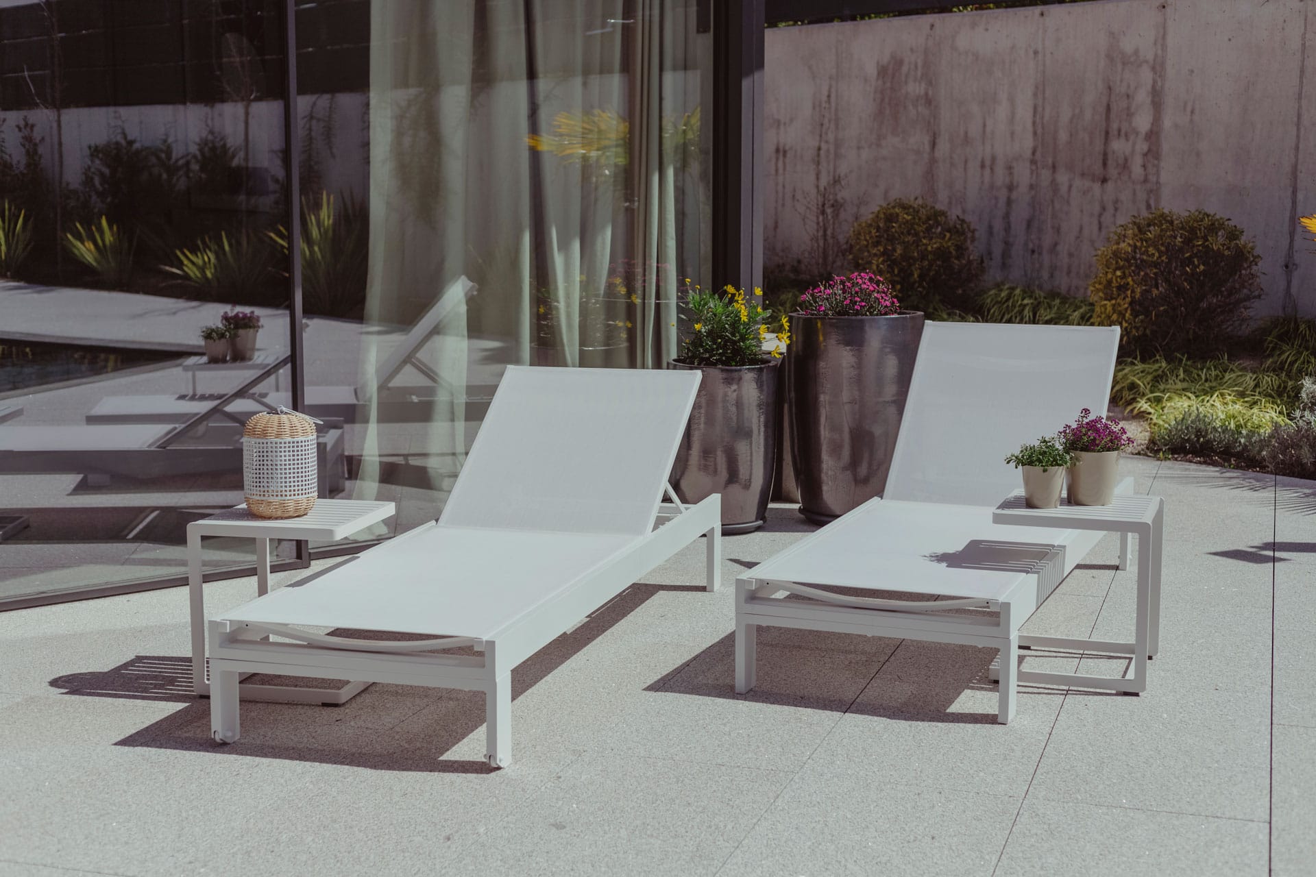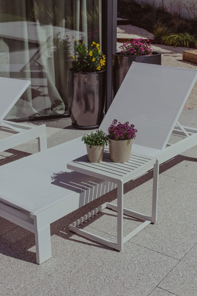 La terraza de Casa Primor acoge una piscina pentagonal para la que se han distribuido tres zonas; de hamacas, chill out y comedor