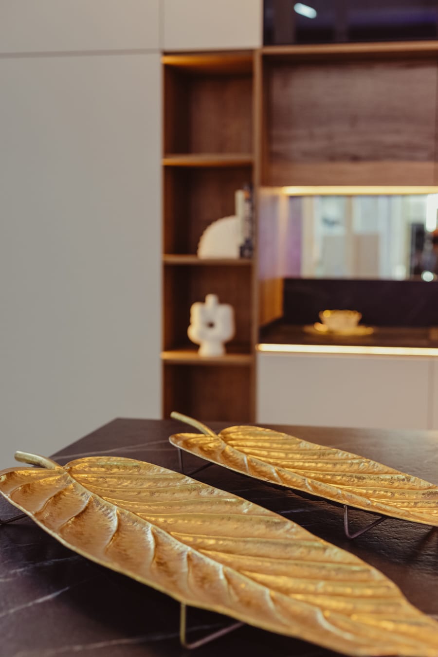 Grifería y cubertería en bronce rematan esta Cocina Glam»