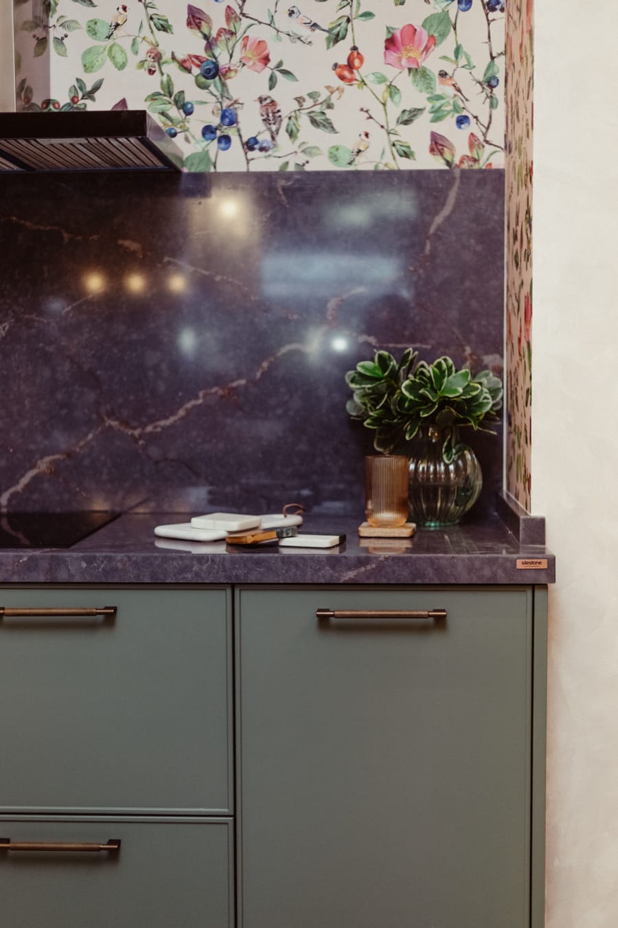 En la Cocina Olive se destacan especialmente su imponente encimera Parisien Bleu Polished y las puertas Mattdeco Agave